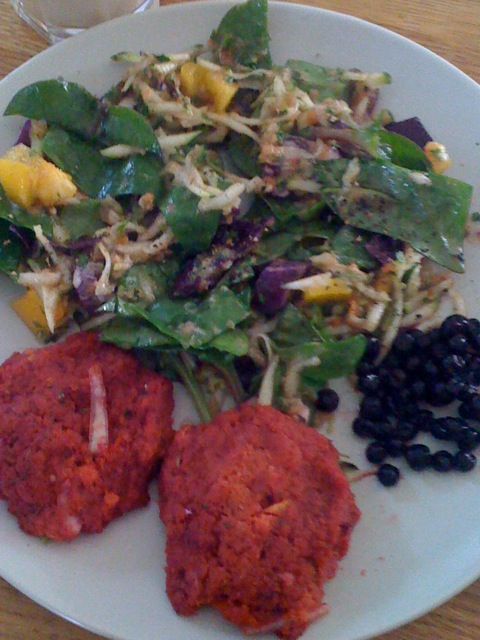 Var och hälsade på en vän förra veckan som gjorde godaste råbiffarna jag någonsin smakat. Så när jag igår gjorde morot och rödbetsjuice med ingefära och persilja sparade jag fibrerna och gjorde idag biffarna.