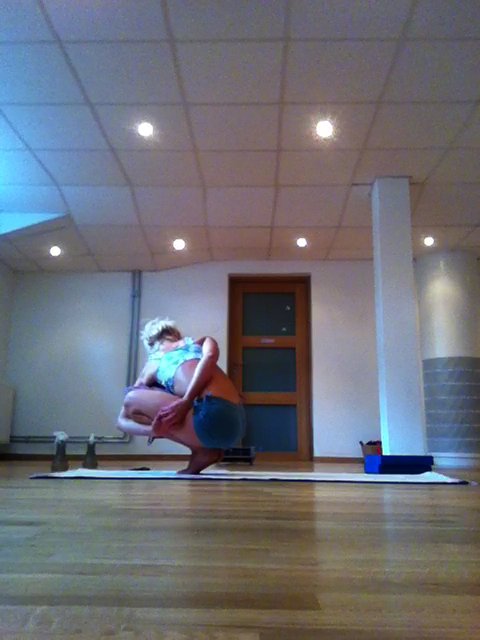 I bryggorna jobbas här vidare med handstående och att försöka lägga fötterna till huvudet (?), känns mer gymnastiskt än yoga. Känslan att stå på händer är smått beroende framkallande. (Jag har frenetiskt stått på händer mot vägg i flera år. Övat på att kunna hoppa upp mot vägg i minst 10 år, från början mark lyfte jag knappt med fötterna. Kom ihåg första gången jag kunde hoppa upp och snudda rumpan mot väggen, sen tog det månader innan det hände igen).