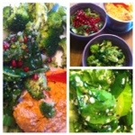 Och en sallad på spenat och gurka hampafrön och granatäpple.